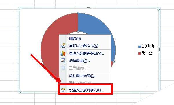 4、如图,点击圆环图鼠标右键选择最后一个选项进行调节圆环图的形状,颜色等。
