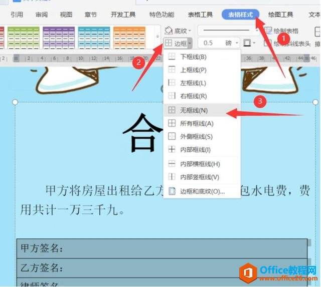 接着我们点击表格样式,在边框这一栏中点击无框线: