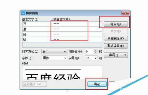 在拼音文字中输入横线,再点击组合。