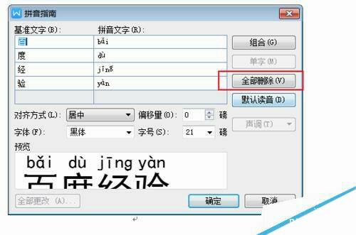 点击全部删除按钮后,清除拼音。