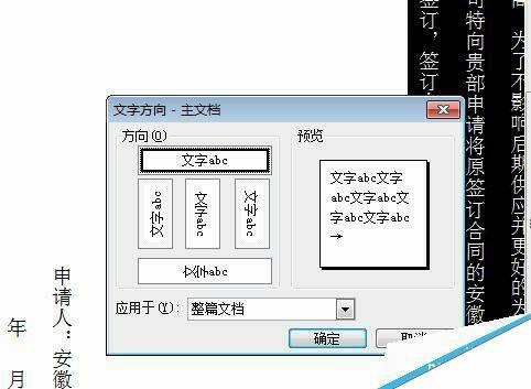 4、关于文字方向的设置,点击格式,文字方向,就会出现关于文字方向的设置的对话框。关于文字方向的设置可以应用到你所选的段落上也可以应用到整篇文章,具体看你的要求。