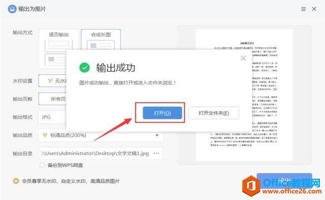 输出图片成功后直接点击【打开】即可看到图片形式的文档内容:
