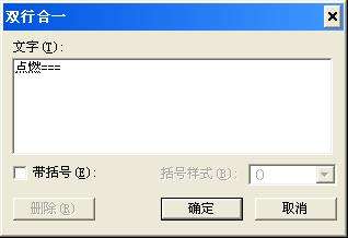 选中其中一个“点燃== ”(注比双行合一法的等号少一个),依次单击“格式—中文版式—合并字符”命令