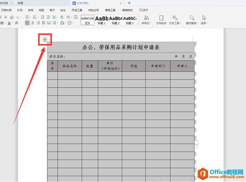 鼠标指到左上角的十字光标进行点击,我们看到表格已经被选中: