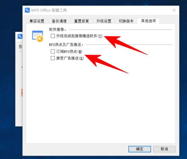 3、在弹出的二级窗口中找到“其他选项”选项卡,将全部选项前面的勾选全部取消,如图所示,点击确定即可。