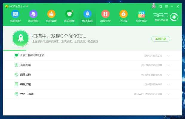 1、首先,打开360安全卫士,点击“优化加速”,进入后点击“全面加速”。