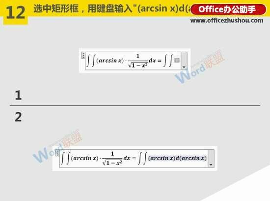 12、选中矩形框,对照公式用键盘在其中输入剩下的内容,这里是“(arcsin x)d(arcsin x)”。