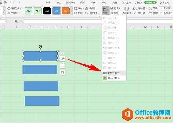然后单击绘图工具,在对齐的下拉菜单当中选择对齐网格。