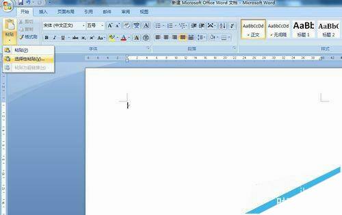 2、打开需要添加图表的Word,单击”开始“按钮,在”粘贴“栏中选择”选择性粘贴“