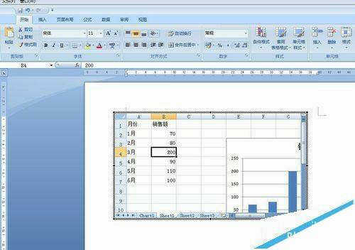 6、例如:将3月销售额改为”200“,然后直接”Enter“键,就完成了。