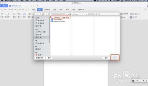 5、然后在出现的页面选中要继续插入的文档,点击打开,然后第二个文档中的文字就插入了
