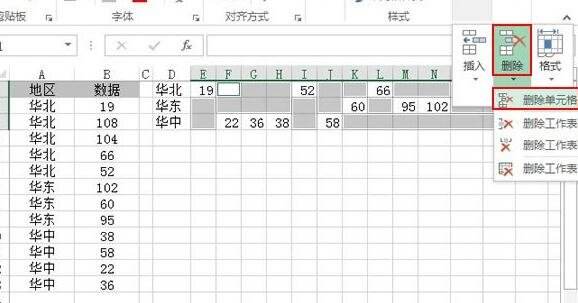 选中左侧表格里的数据区域,华北、华东和华中,复制。