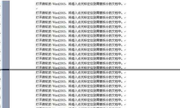 打开微软的Word2003,将插入点光标定位到需要拆分的文档中。