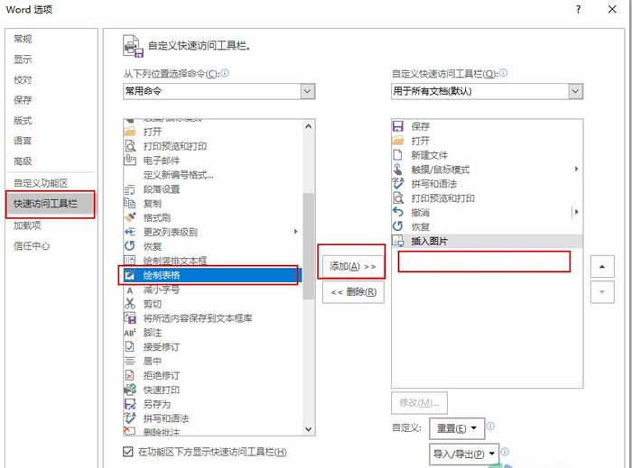 Word中如何将绘制表格添加到快速访问栏?