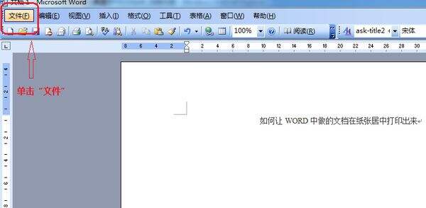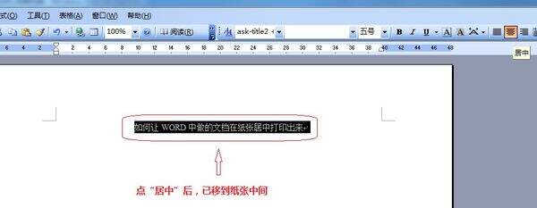 hmoban 办公教程 2024-03-16 word打印时怎么居中 办公教程导读 收集整理了【word打印时怎么居中】办公软件教程,小编现在分享给大家,供广大互联网技能从业者学习和参考。文章包含96字,纯文字阅读大概需要1分钟。 办公教程内容图文 2、单击右上角工具栏中的“居中” 3、单击屏幕左上角的“文件” 4、在弹出菜单中选择“打印”或直接按CTRL+P组合键,就可将文档居中打印出来。 办公教程总结 以上是为您收集整理的【word打印时怎么居中】办公软件教程的全部内容,希望文章能够帮你了解办公软件教程word打印时怎么居中。 如果觉得办公软件教程内容还不错,欢迎将网站推荐给好友。 hmoban主题是根据ripro二开的主题,极致后台体验,无插件,集成会员系统自学咖网 » word打印时怎么居中