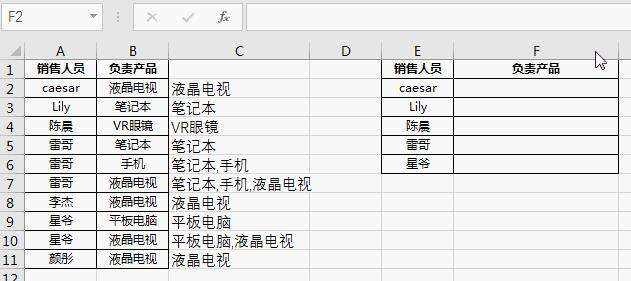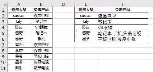 如图所示,需要把A,B列数据整理为E,F列数据。具体如图所示。