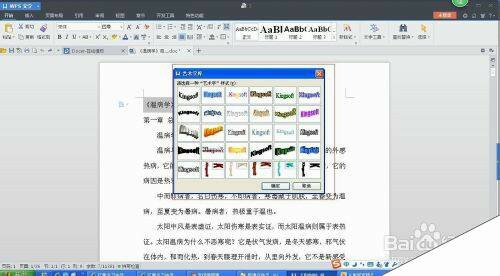 点击“艺术字”按钮,这时会弹出“艺术字库”对话框。选择需要的艺术字样式后点击“确定”按钮。