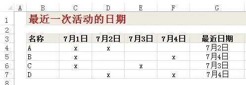收集整理了【excel常用函数求最近一次活动的日期】办公软件教程,小编现在分享给大家,供广大互联网技能从业者学习和参考。文章包含607字,纯文字阅读大概需要1分钟。