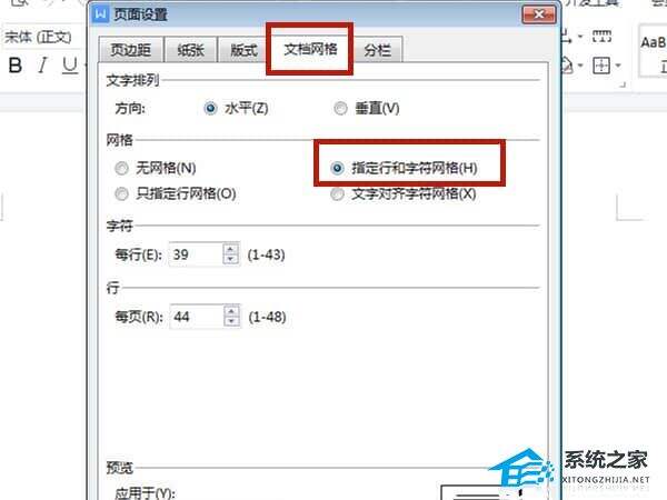 2、点击文档网络购,勾选指定行和字符网络后设置每页的行数和每行的字数即可。