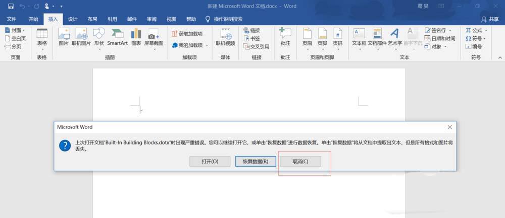 收集整理了【word出现错误对话框Built In Building Blocks怎么解决?】办公软件教程,小编现在分享给大家,供广大互联网技能从业者学习和参考。文章包含405字,纯文字阅读大概需要1分钟。