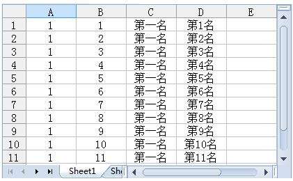 举例如下:要想在B1:B112 中键入数字序列“1、2、3…..112”,只须在B1中输“1”,选定B2:B112,双击填充柄即可。如果需要在“C1:C97”中键入文本序列“第1名、第2名、…..第97名”,只需要在C1中键入“第1名”,选定C1单元格,双击填充柄即可。