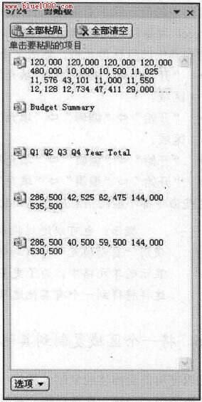 警告:但是Office 剪贴板有一个严重的问题,这使得它对Excel 用户几乎没有价值。即如采复制一个包含公式的区域,那么当粘贴到不同区域时公式不会被转移,只有值可以粘贴,此外, Excel 甚至不能警告这一事实。