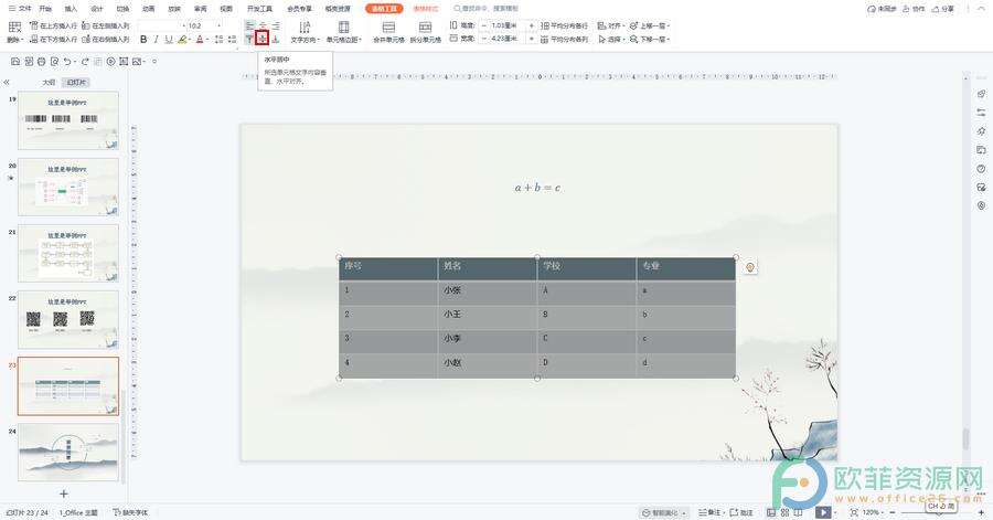 电脑版WPS演示文稿怎么设置表格中文字居中对齐