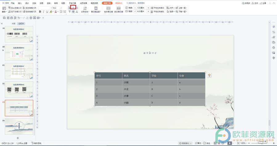 以上是为您收集整理的【电脑版WPS演示文稿怎么设置表格中文字居中对齐】办公软件教程的全部内容,希望文章能够帮你了解办公软件教程电脑版WPS演示文稿怎么设置表格中文字居中对齐。