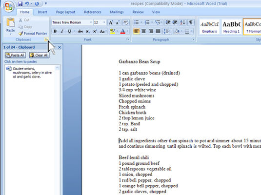 提示:只要剪贴板任务窗格可见,您就可以清理Word 2007剪贴板。