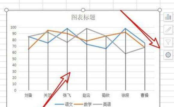 这时就能在折线图上显示出垂直线了。点击折线图后点击右侧的“设置”按钮。