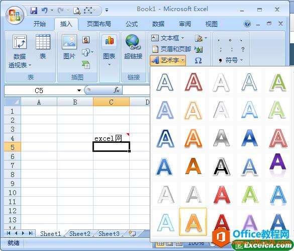 以上是为您收集整理的【如何在excel中插入艺术字的方法】办公软件教程的全部内容,希望文章能够帮你了解办公软件教程如何在excel中插入艺术字的方法。