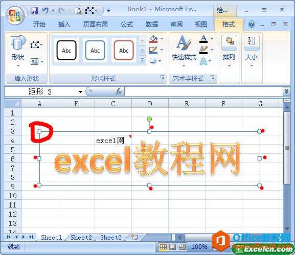 3、我们可以选中艺术字,然后根据艺术字边缘的圆点来进行艺术字的位置和大小调整,如图3所示。