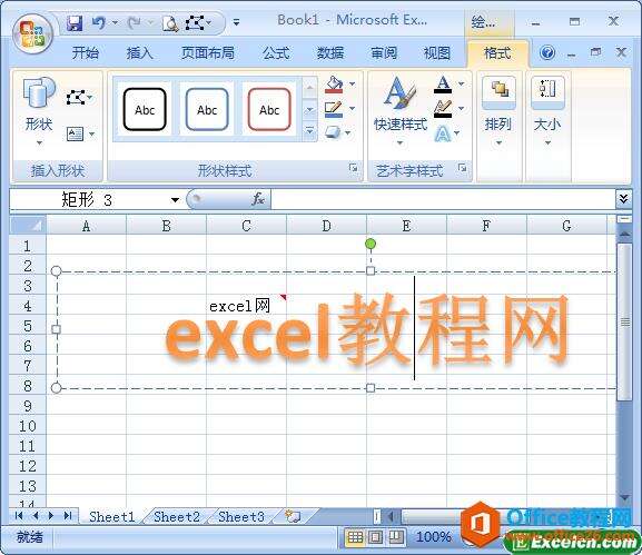 2、此时在工作表中出现了一个艺术字文本框,我们在文本框中输入文字内容,如图2所示。