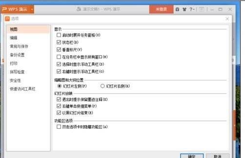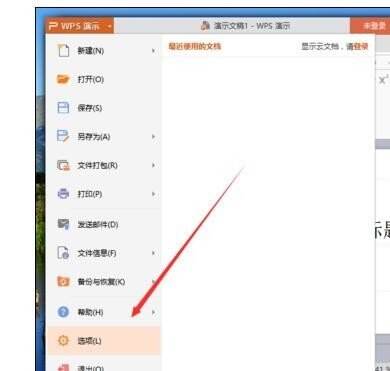 三、在弹出的“wps演示”命令选项对话框中,选择并点击“选项”命令选项。