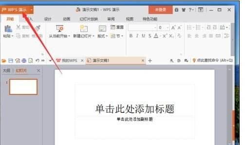 二、在打开的wps演示窗口中,点击左上角的“wps演示”命令选项。