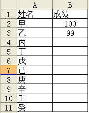 第一步。查看一个简单的评分表(见图1),选择评分区域B2: B11,并打开菜单数据|有效性。