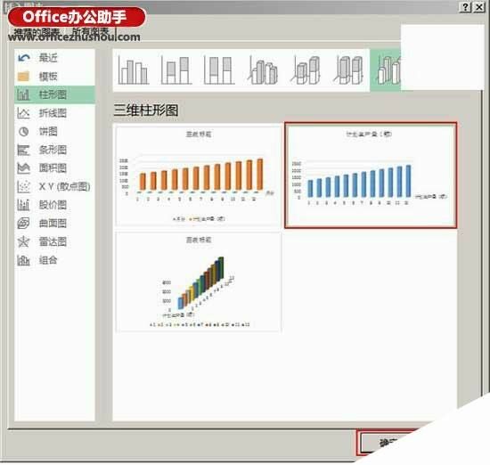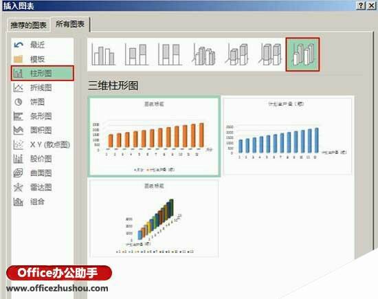 提示:可以直接在第一步中选择可用的柱形图类型,不过生成的都是所在类型的默认效果柱形图。