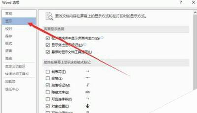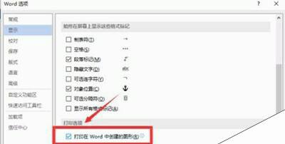 7、此时我们应该在对话窗口中切换到“显示”选项卡栏,具体操作如下图所示: 在显示中我们找到打印选项区域下的“打印在 Word 中创建的图形”选项并将其勾选“√”,再确定保存下来就可以了,具体操作如下图所示: