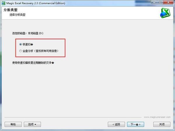 3、选择分析类型,可以选择快速扫描,也可以选择全盘分析,选择完之后点击下一步。