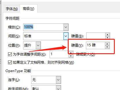 4、根据你需要的上升高度,填写对应的磅值。之后点击确定,就可以看到文字已经提升了。