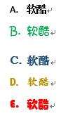 选中源格式“A.软酷”,双击格式刷,再选中目标内容B,C,D,E.这样连续使用格式刷就完成了。想停止“格式刷”工作,只要单击鼠标左键即可。在excel中也是同样的用法。