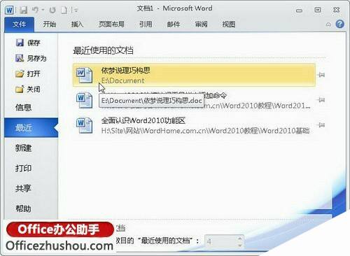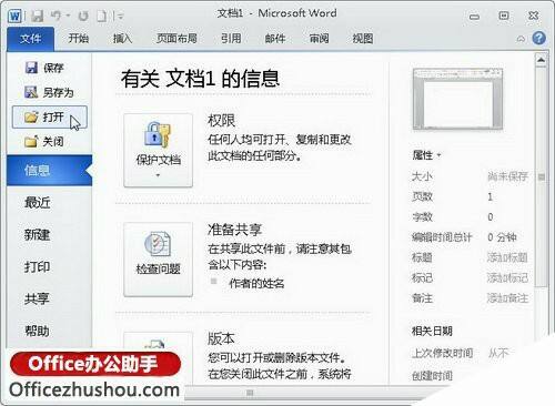 图文介绍Word 2010界面中的“文件”按钮所包含的命令