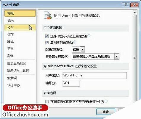 选择“文件”面板中的“选项”命令,可以打开“Word选项”对话框。在“Word选项”对话框中可以开启或关闭Word 2010中的许多功能或设置参数,如图所示。