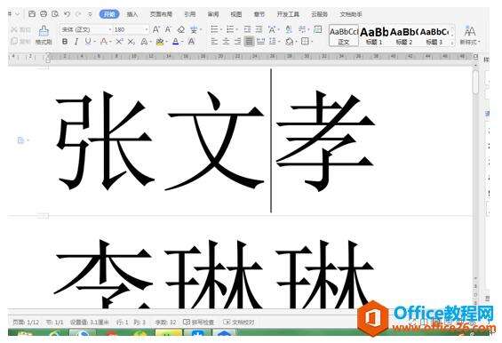 然后选中所有名字,将字号改为180,我们发现每一个名字中间都有一条横线,我们打印出来以后,就按照横线将纸张剪开就可以