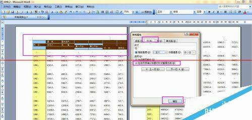 2、选择表头,单击鼠标右键,在快捷菜单中选择“表格属性”,打开“表格属性”对话框后,勾选“在各页顶端以标题行形式重复出现”这一选项,单击确定即可。