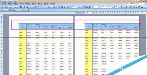 4、设置重复标题行后,表格在跨页时候,就会在页面顶端显示标题行了。