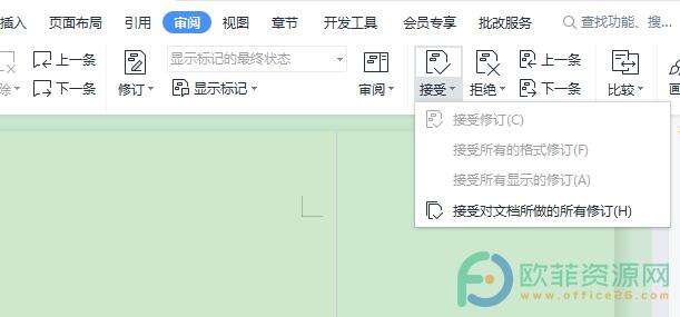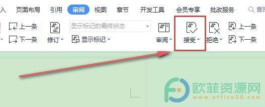 3、最后,在点开图标的列表中选择点击接受对文档所做的所有修订选项就可以了