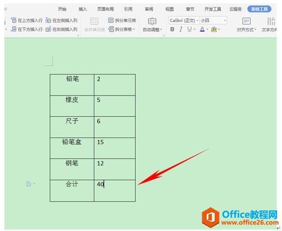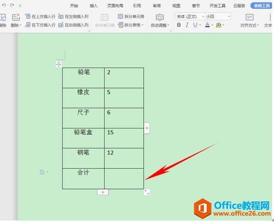 首先我们看到如下表格,我们需要合计这些物品的数量总和。
