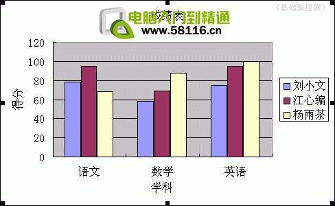 这样就创建好一个图表,每个颜色代表一个同学,可以从颜色上来比较三个同学的成绩;