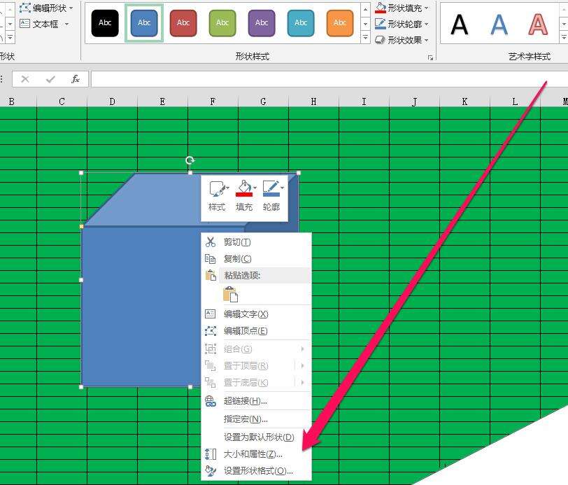4、出现右键的下拉的菜单,我们在菜单中选择设置形状格式按钮。